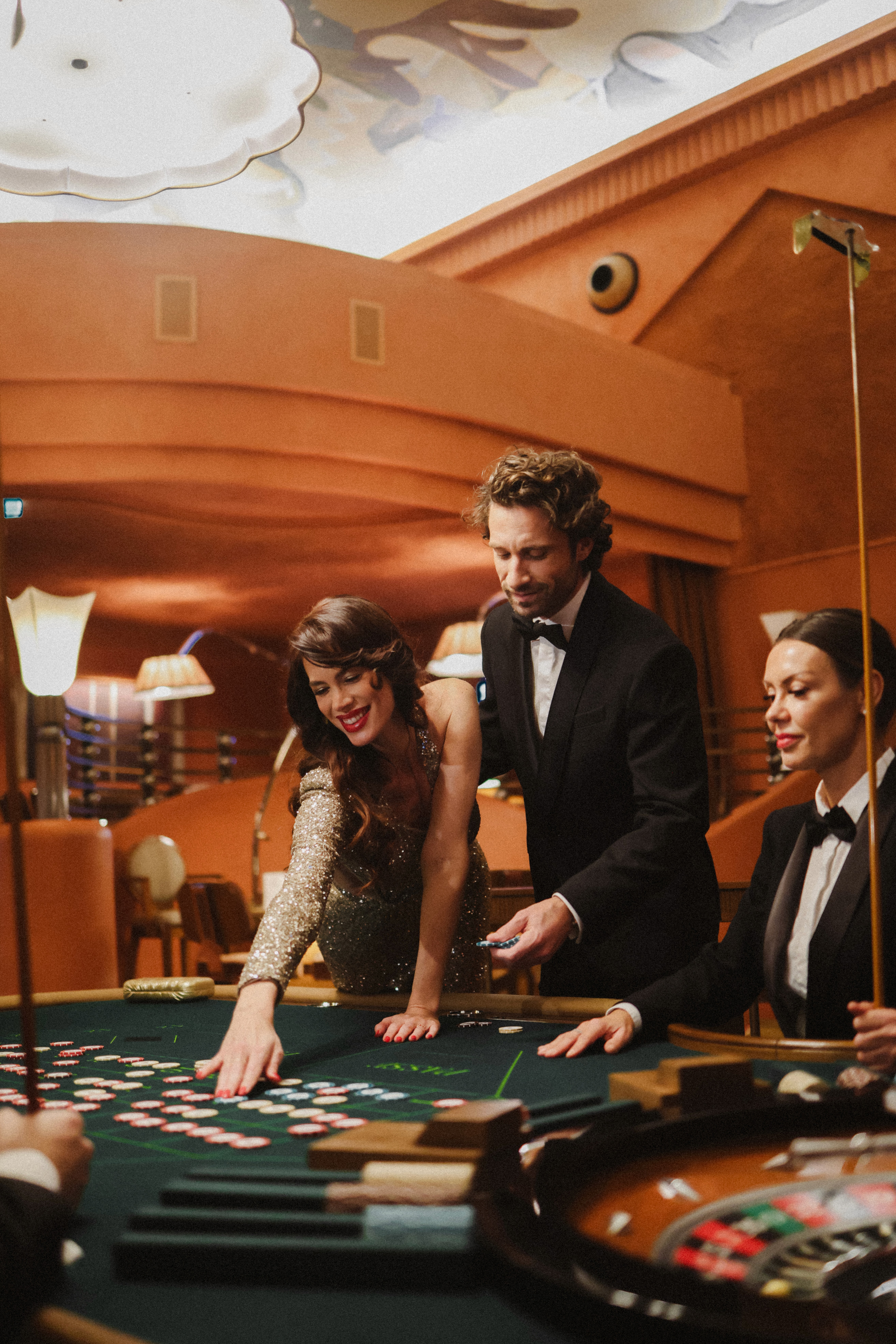 Designed by the architects Caprini & Pellerin, the Casino rivals in elegance with its majestic high ceilings, plays on volumes, pastel-and-terracotta tones, and hand-painted frescoes. Soft lighting completes the unique ambience.